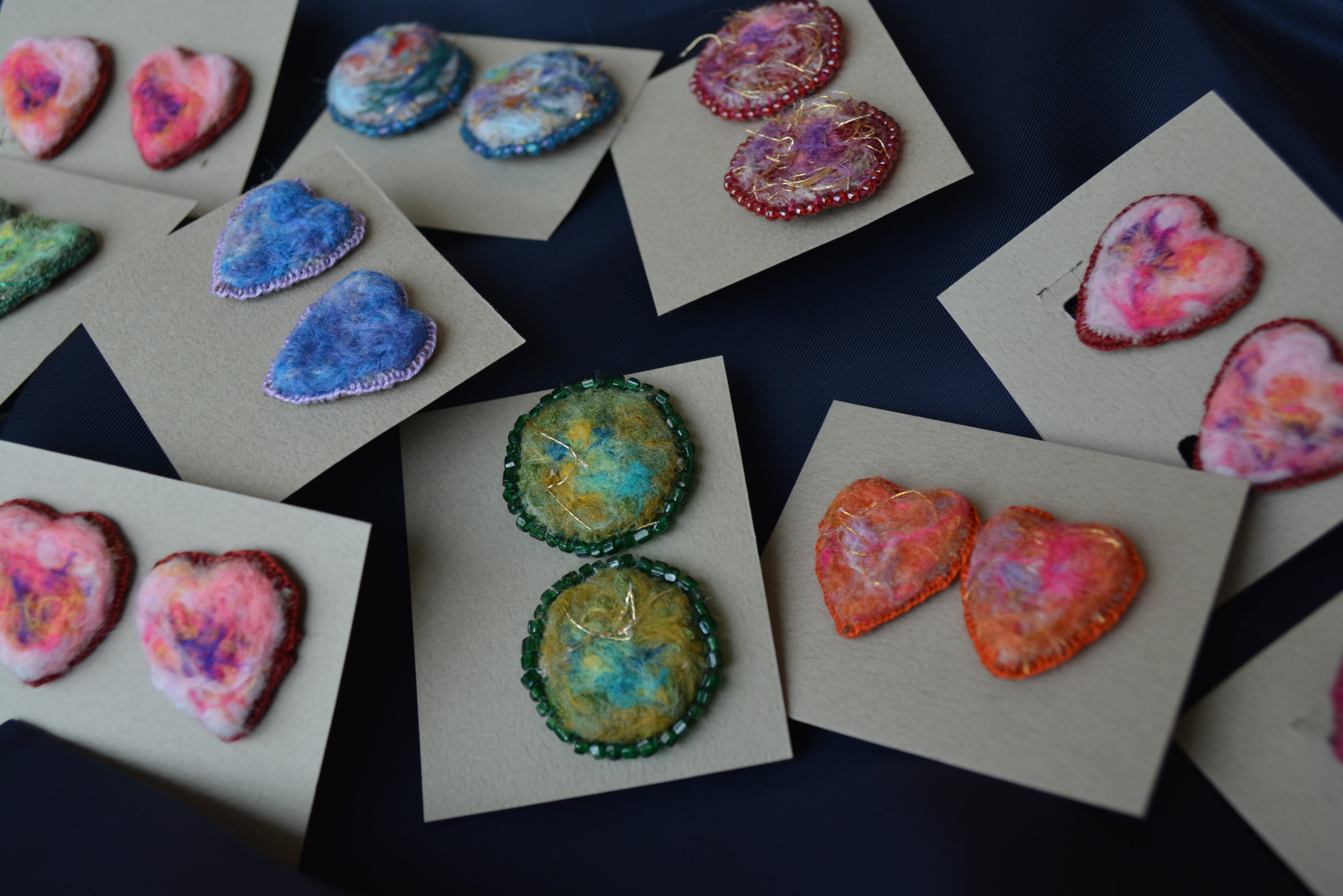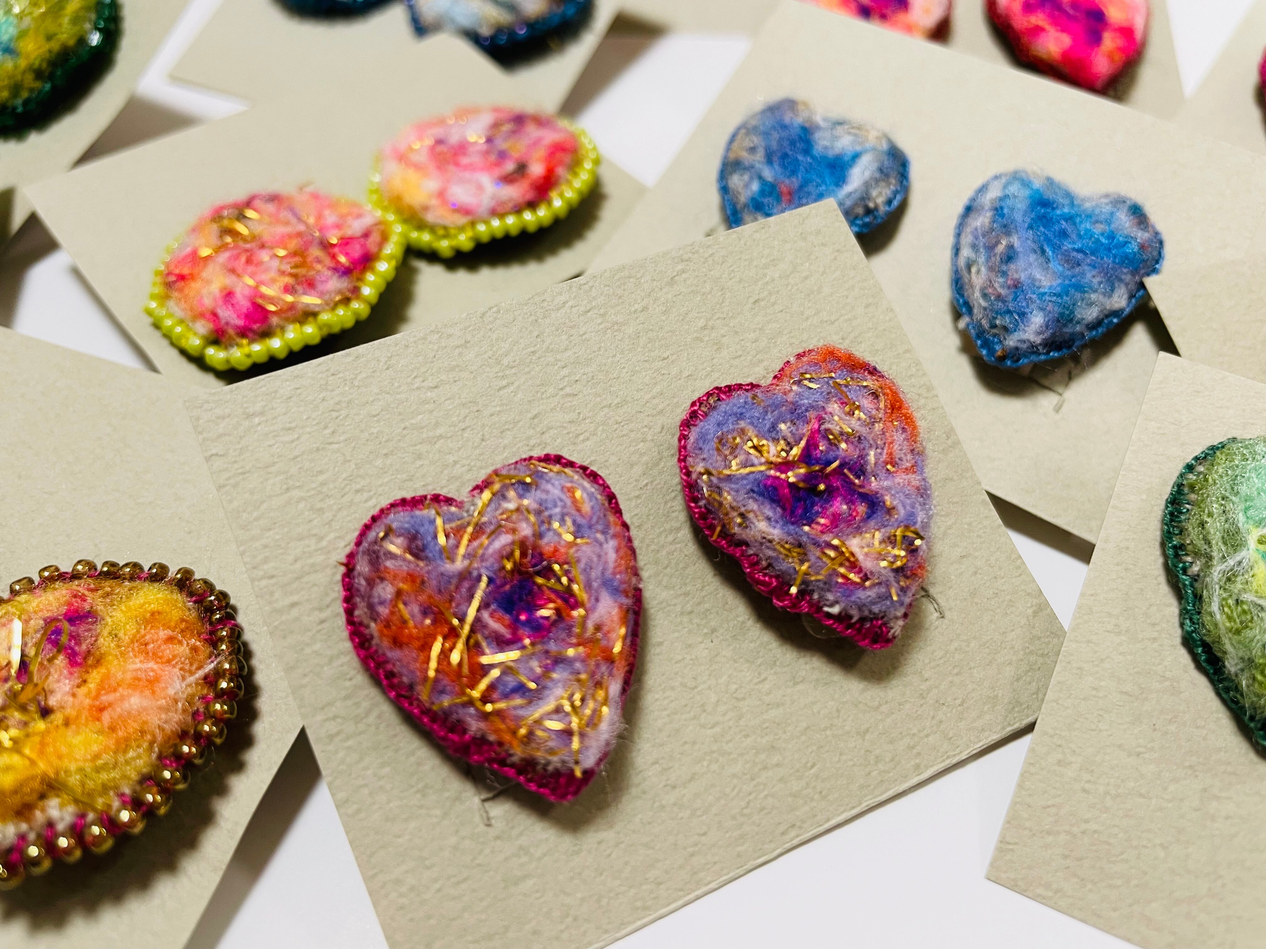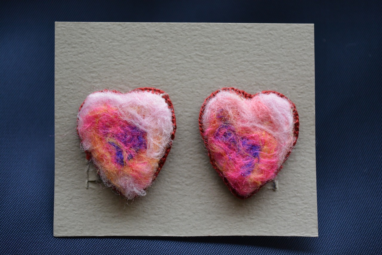 Heart型をモチーフとし、周りは一針一針刺繍をしております。